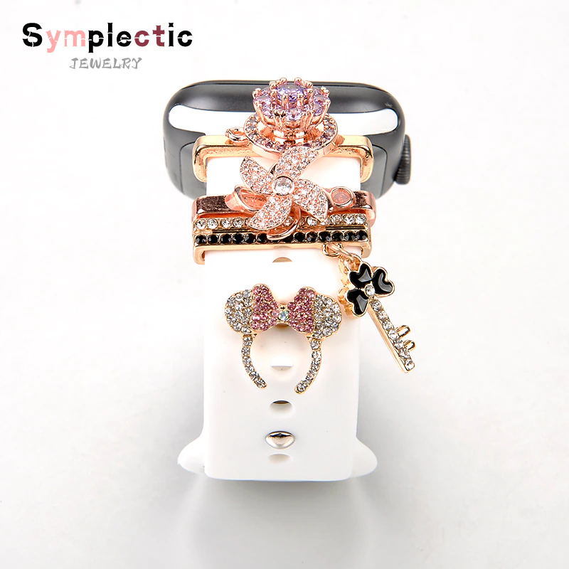 Dekorativni nakit za Apple/Samsung Watch narukvice, u pitanju je metalni privezak sa ukrasima cirkonskog kamenja na sebi.